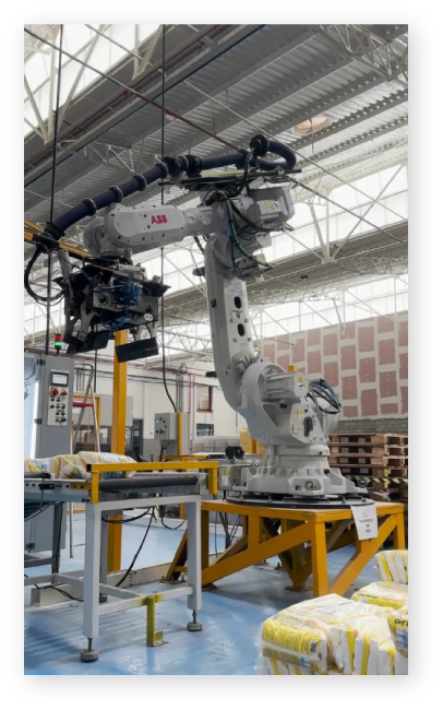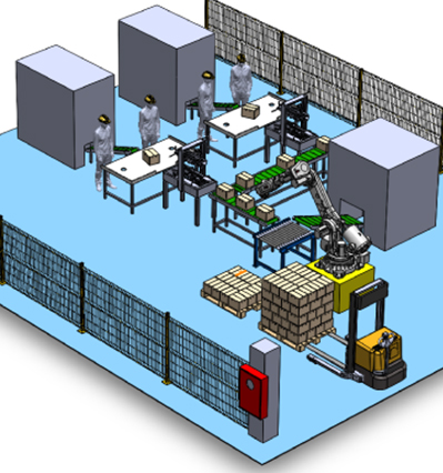 Projeto e fabricação de garra robótica para manipulação de fardos, caixas e paletes, com desenvolvimento completo de layout para célula de paletização