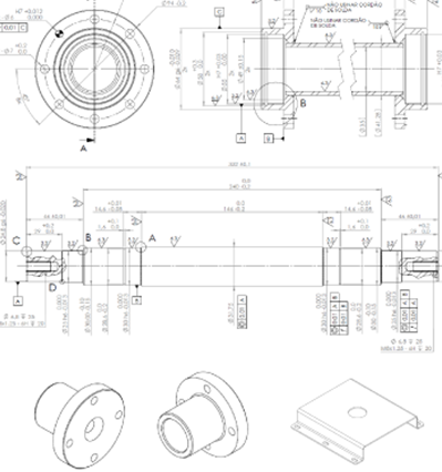 Desenhos para fabricação de todas as peças do equipamento, incluindo arquivos 3D